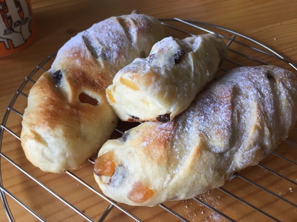 スケッパーで三等分にし、15cmくらいのコッペパン型につくる