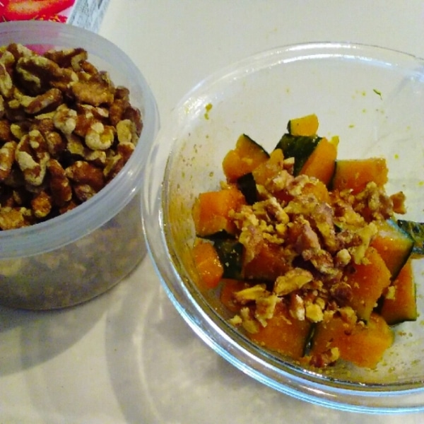 ①を耐熱容器に入れて上からメープルシロップをまわしかけます。こうすることで熱の通りが良くなり時短になります。ラップをかけて600wで2~3分加熱。