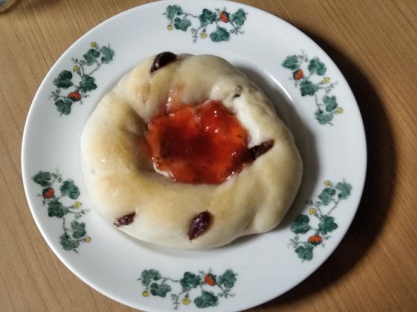 ジャムやドライフルーツは甘いので、クリームチーズと合わせるとよく合います。写真のは省いてしまいましたが、ドリュールを塗ってツヤを出したり、グラニュー糖をまぶしたりすると一層菓子パンっぽくなります