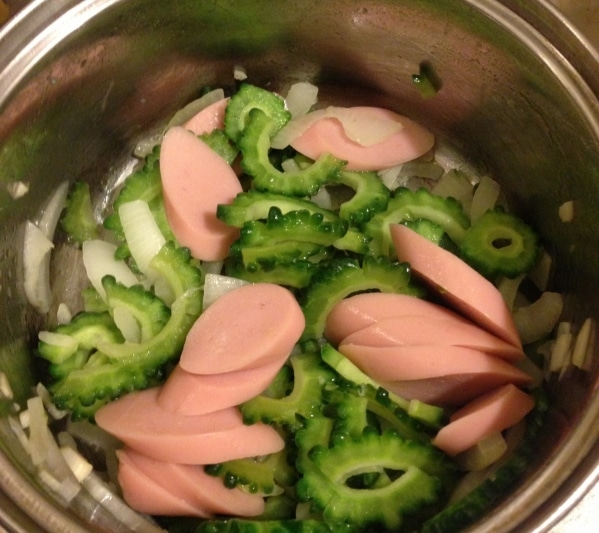 ゴーヤと魚肉ソーセージのピリ辛炒め