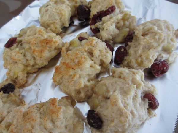 粉類、植物油、はちみつを加え混ぜ、最後にクランベリーを加えて混ぜる。