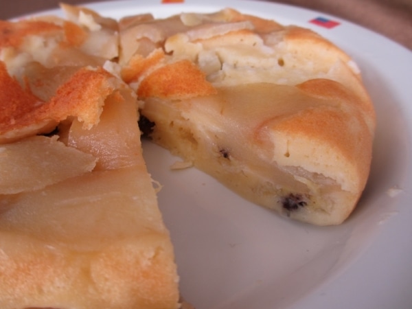 22cmのパイ皿にバターまたは植物油を塗り、そこに薄切りにしたリンゴとバナナを並べる。