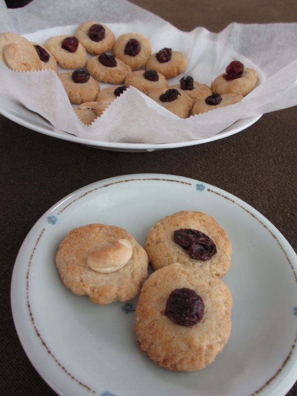 カシューナッツ、レーズン、クランベリーを乗せています。