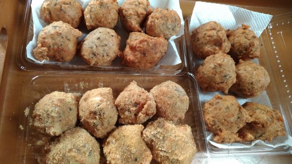 揚げ油を180℃に熱し、3をスプーンですくって入れ、キツネ色になるまで揚げる。