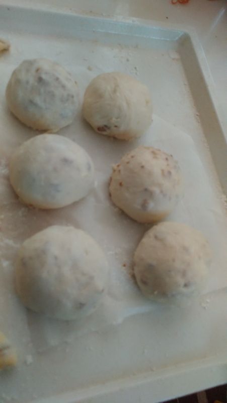 ホームベーカリーで生地をつくるので簡単です。
