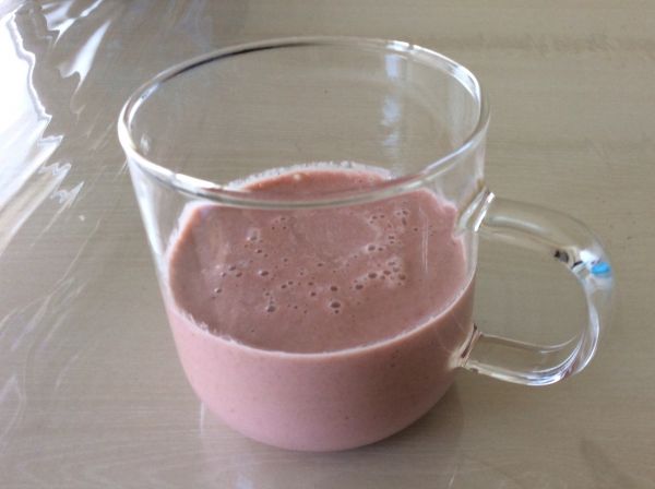 滑らかになってきたら冷凍いちごを入れ攪拌させます。