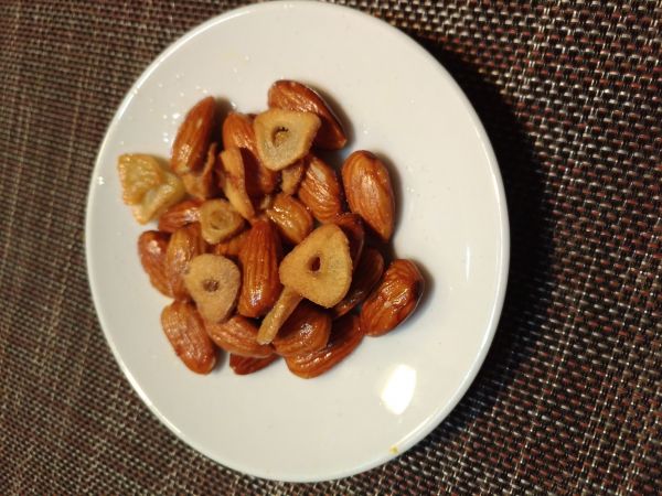 にんにくをじっくり炒めてカリカリに仕上げるとアーモンドがちょうどカリカリになる目安になります。