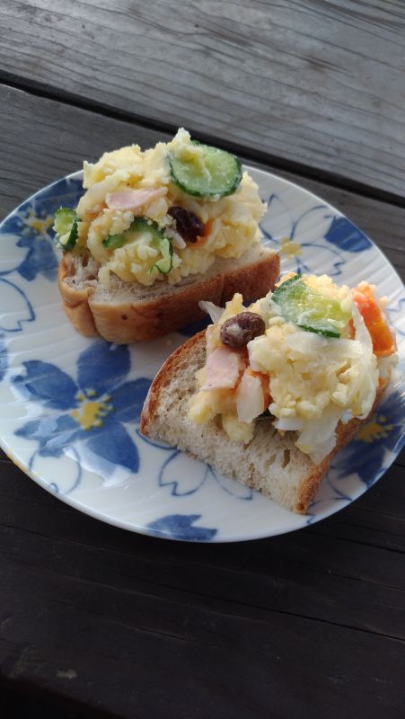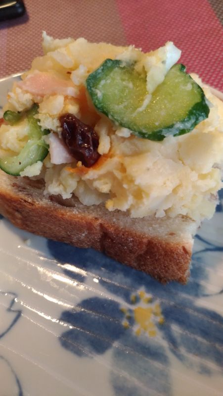 レシピトップ › サルタナレーズンのレシピ › レシピ サルタナレーズンの商品ページへ レシピ投稿 レーズンポテトサラダのオープンサンド share × このレシピを共有 LINE X Facebook URLをコピー いいね! レーズンの甘味と酸味がアクセントになります。 オープンサンドにすることで彩りも綺麗です。 posted by ラン子ラン子さんの他のレシピ 材料 (4) ライ麦パン(スライス)8枚 じゃがいも400g 玉ねぎ1/8個 きゅうり1/3本 塩ひとつまみ 人参30g ゆで卵1個 ハム2枚 レーズン大さじ1 マヨネーズ大さじ2 塩少々 作り方 1 じゃがいもは、皮付きのまま耐熱皿に入れ、ラップをして600w5~6分加熱し、軟らかくします。 2 じゃがいもが熱いうちに皮をむいてつぶします。 3 玉ねぎ、きゅうりは薄切りにして塩をふり、しんなりしたら水気を絞ります。 4 人参はいちょう切りにし、軟らかくなるまで熱湯で茹でます。 5 ゆて卵は1cm角に切ります。 ハムは横3等分にしてから5mm幅に切ります。 6 2、3、4、5を混ぜ合わせて、マヨネーズを加え、塩で味を整えます。レーズンを加えて、ライ麦パンにのせます。 一言コメント パンはお好みのパンでどうぞ。 関連する商品 サルタナレーズン