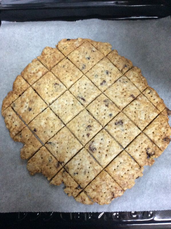 クッキングシートに置いて、めん棒で4mmの厚さに伸ばし、包丁で好みの形に切り込みを入れる。