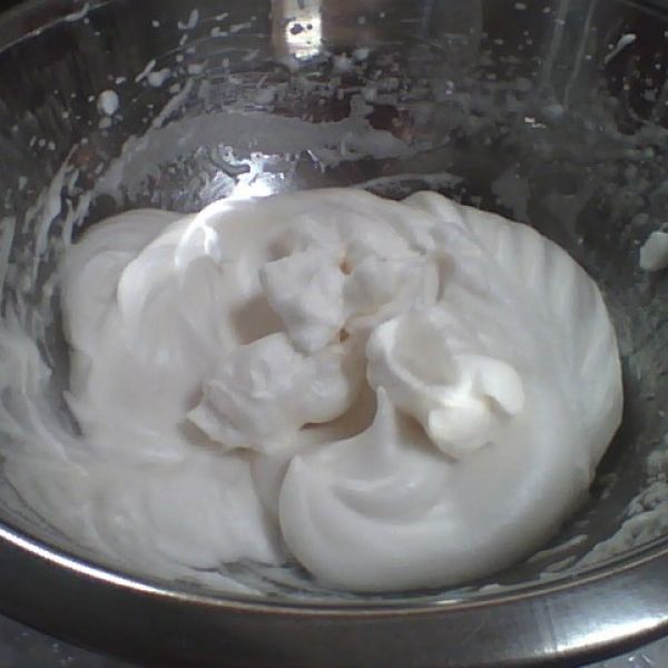 メレンゲの1/3量を3に加えて、均一に滑らかによく混ぜ合わせる。