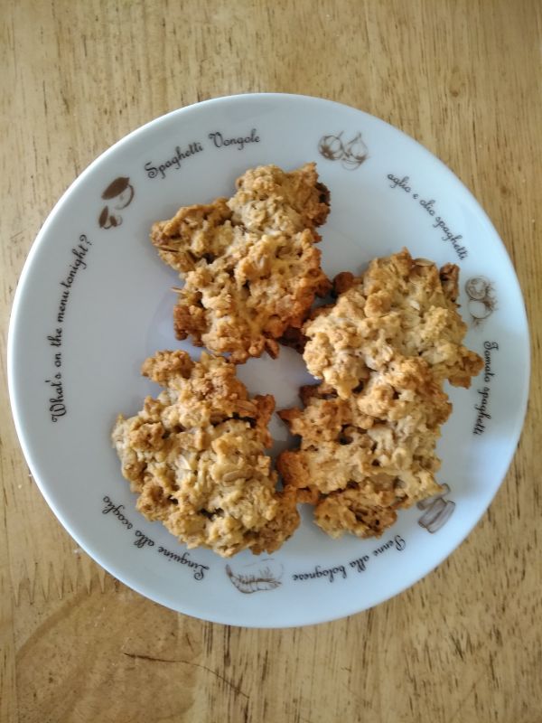 今回、グラノーラは業務用スーパーで買った、フルーツやナッツが入っていないものを使用しました。少し香料がきつかったので、クッキーにしたら緩和されるのではとおもい作りました。アーモンドプードルと薄力粉の割合は変えても大丈夫です。勿論、フルーツやナッツを加えるのもあり!