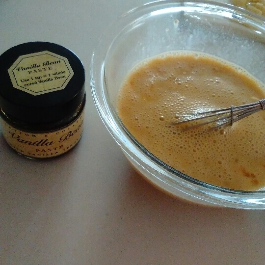 レンジで作るカスタードクリームって、手軽だけどダマになりやすい・・・。そこで、あえてアーモンドプードルを入れて作ってみました。ダマが気にならないうえに、ちょっとリッチな仕上がりです。