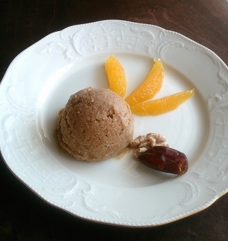 冷凍庫に入れて4時間ほどしたら、一度スプーンでかき混ぜる。この工程は省いても、カチカチになってしまうことはない。冷凍庫に入れてからかき混ぜる手間を省きたいときはデーツの割合を増やすと、まったく固くならなくできる。