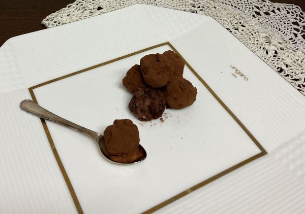 洋酒に漬けたレーズンとドライクランベリーの入ったトリュフです