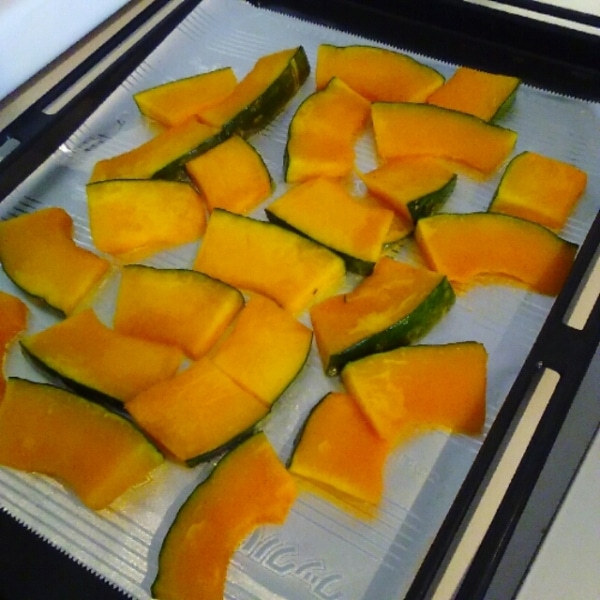 旬のかぼちゃ・・・ですが、買ってみたら甘くなかったということも。そんなときはまとめて焼いちゃいましょう。