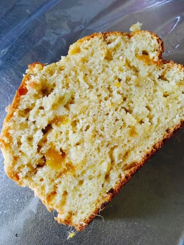 甘いバナナと甘酸っぱい杏のパウンドケーキです。